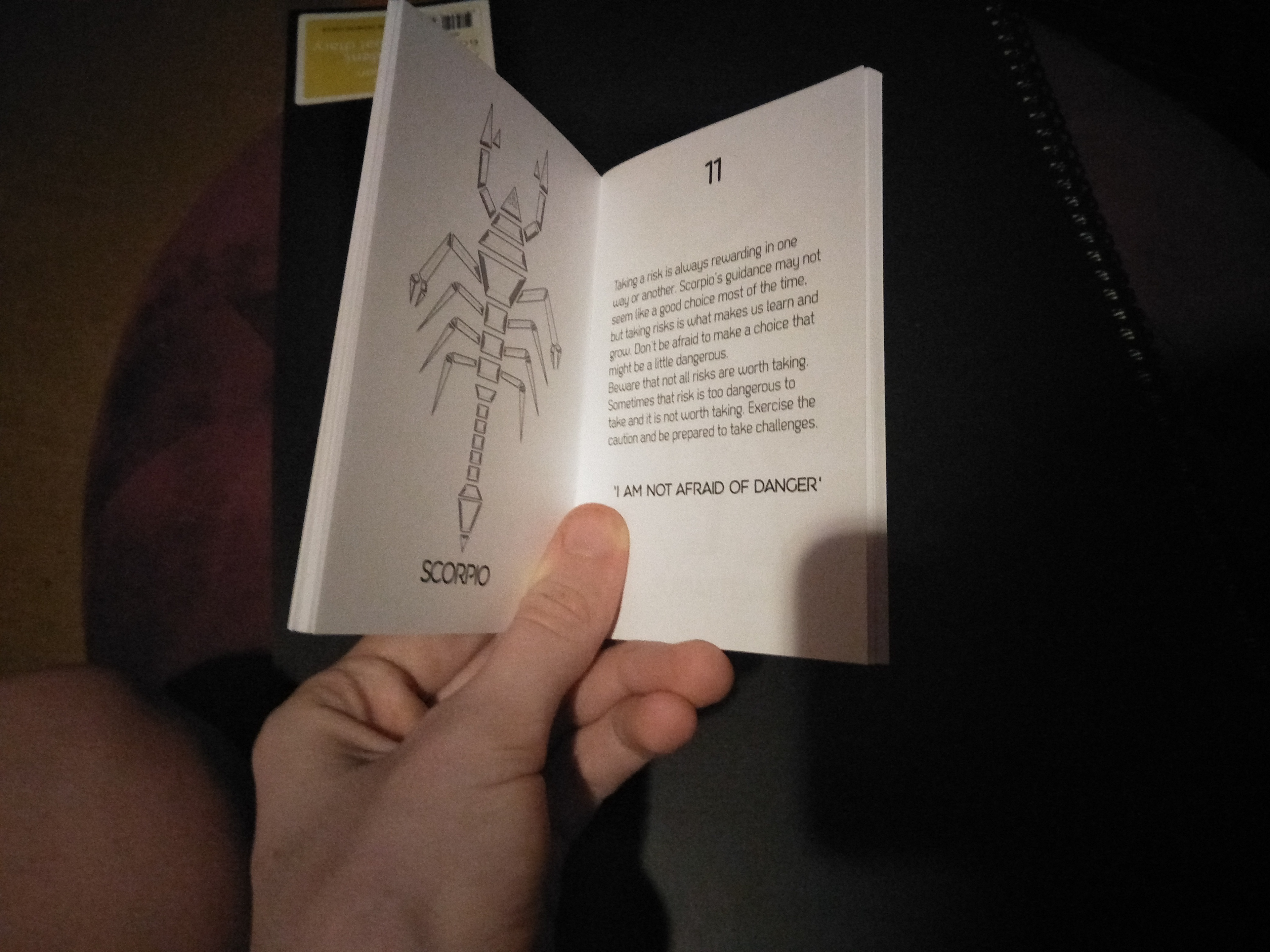 Readings can be expanded on, as the booklet lists a few options for the user. This includes a single card reading, a dual reading, and a Past, Present, and Future reading.